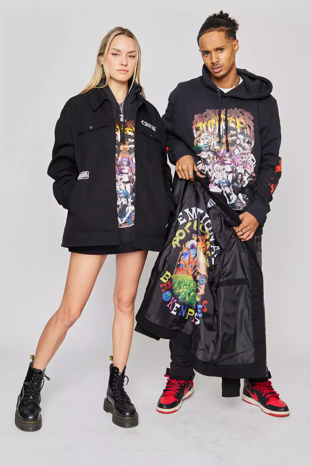 - Female model wears size M, Male model wears size L