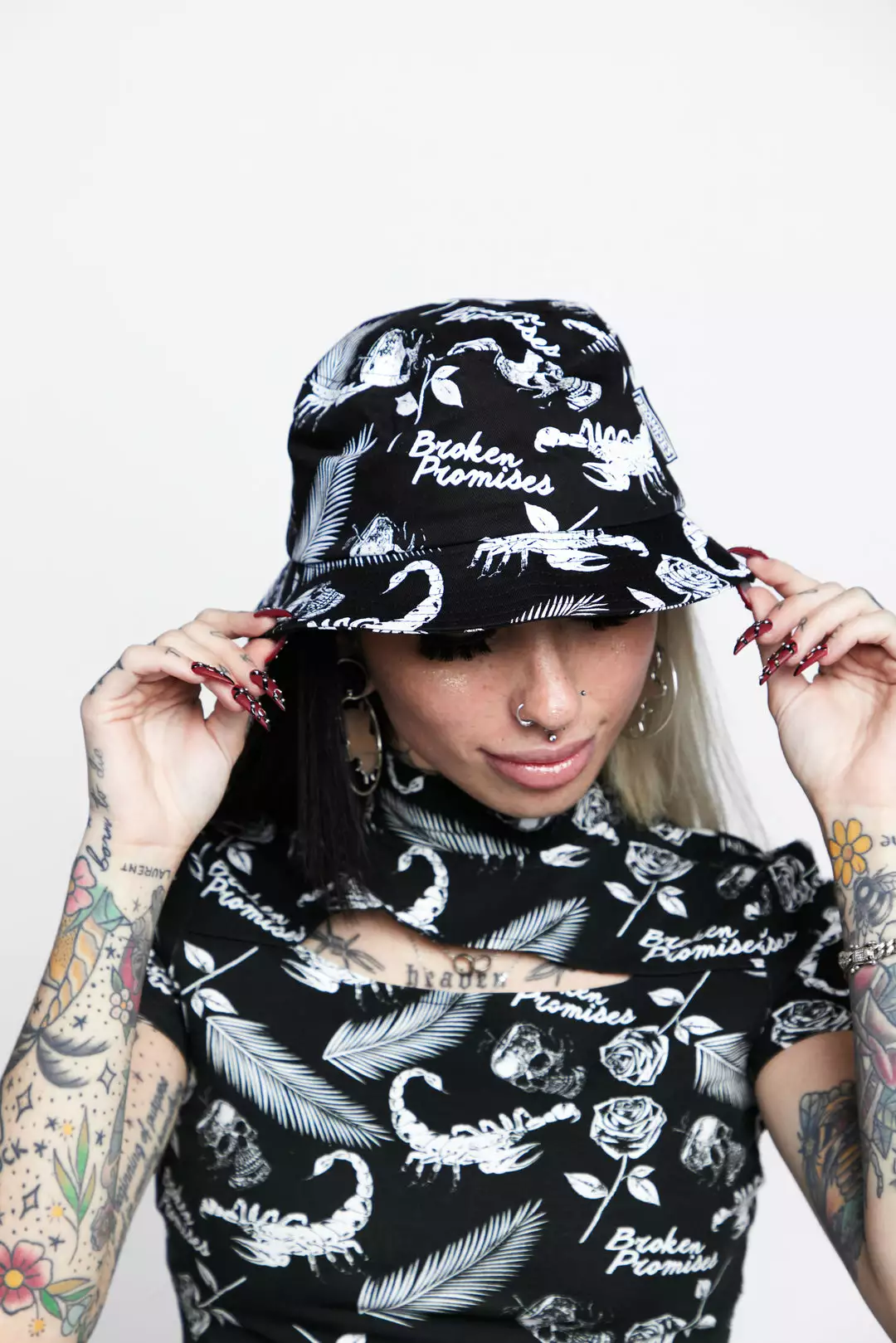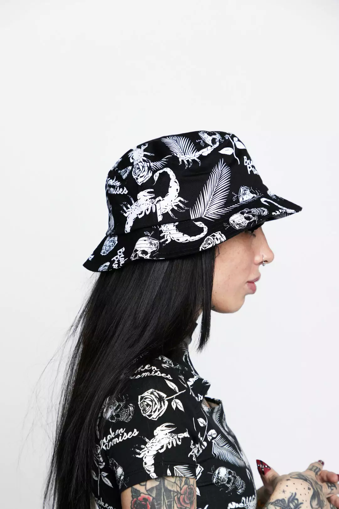 - Sublimated graphics of skulls, scorpions, and flowers throughout.