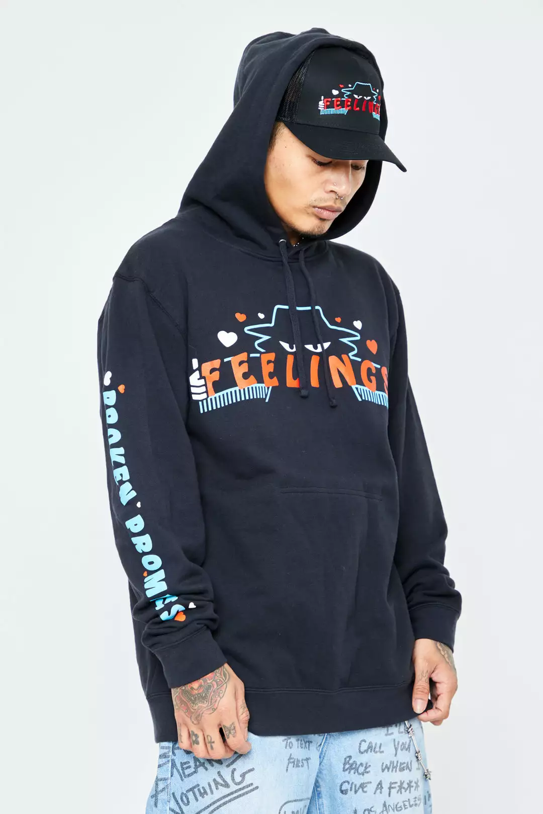 - Printed on our custom Broken Promises hidden pocket hoodie